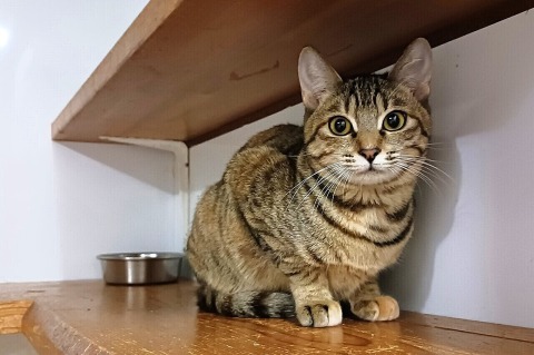 キャットウォークの上から狙っていたのは、スンスンちゃんでした。