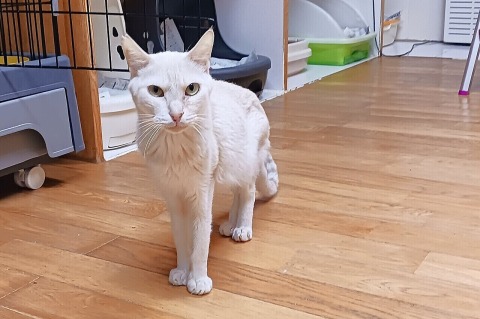 私が器を持って、しらたまちゃんに近づいただけで、逃げられてしまいます。