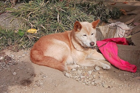 病院に向かったまるちゃんを、ジョンが日向ぼっこしながら、見送っていました。