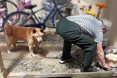 朝のお散歩はオーナーのご主人が担当でしたが、ご覧の通り、ご主人はお散歩より草取りがメインなのです。