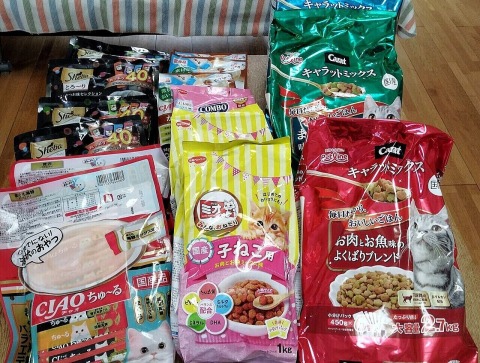 元気に賑やかに暮らしている猫ちゃんたちに、沢山食べさせてあげてください。
