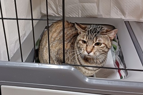 実は、太い尻尾のてるちゃんが入っていったこのキャリーには、つい先ほどまで、サトちゃんがいたのです。