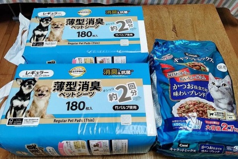 こちらのフードとトイレシーツは、お客さまのHさんからいただきました。